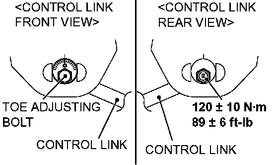 1. Carry out adjustment by turning the toe adjusting bolt (control link mounting bolt which is located on the inner side of the body).
