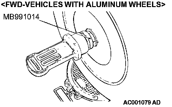 ^ MB991014: Wheel Alignment Gauge Attachment [Vehicles with aluminum wheels (FWD)]