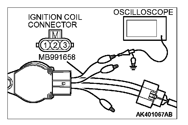 1. Disconnect the ignition coil connector, and connect test harness special tool (MB991658) between the separated connector. (All terminals should be connected.)