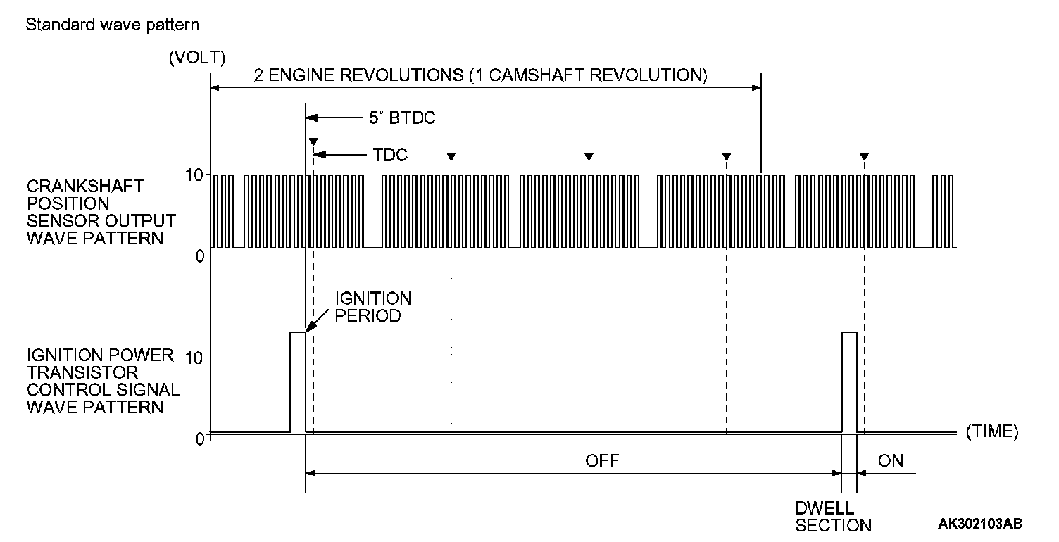 Point: The power transistor control signal (ignition timing) is advanced when the engine speed is increased.