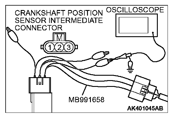 3. Disconnect the crankshaft position sensor intermediate connector, and connect the test harness special tool (MB991658) between the separated connector.