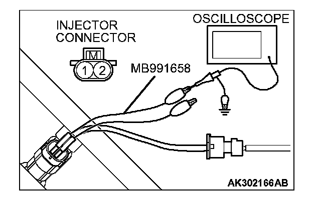 2. Connect the oscilloscope probe to injector connector terminal No. 2.