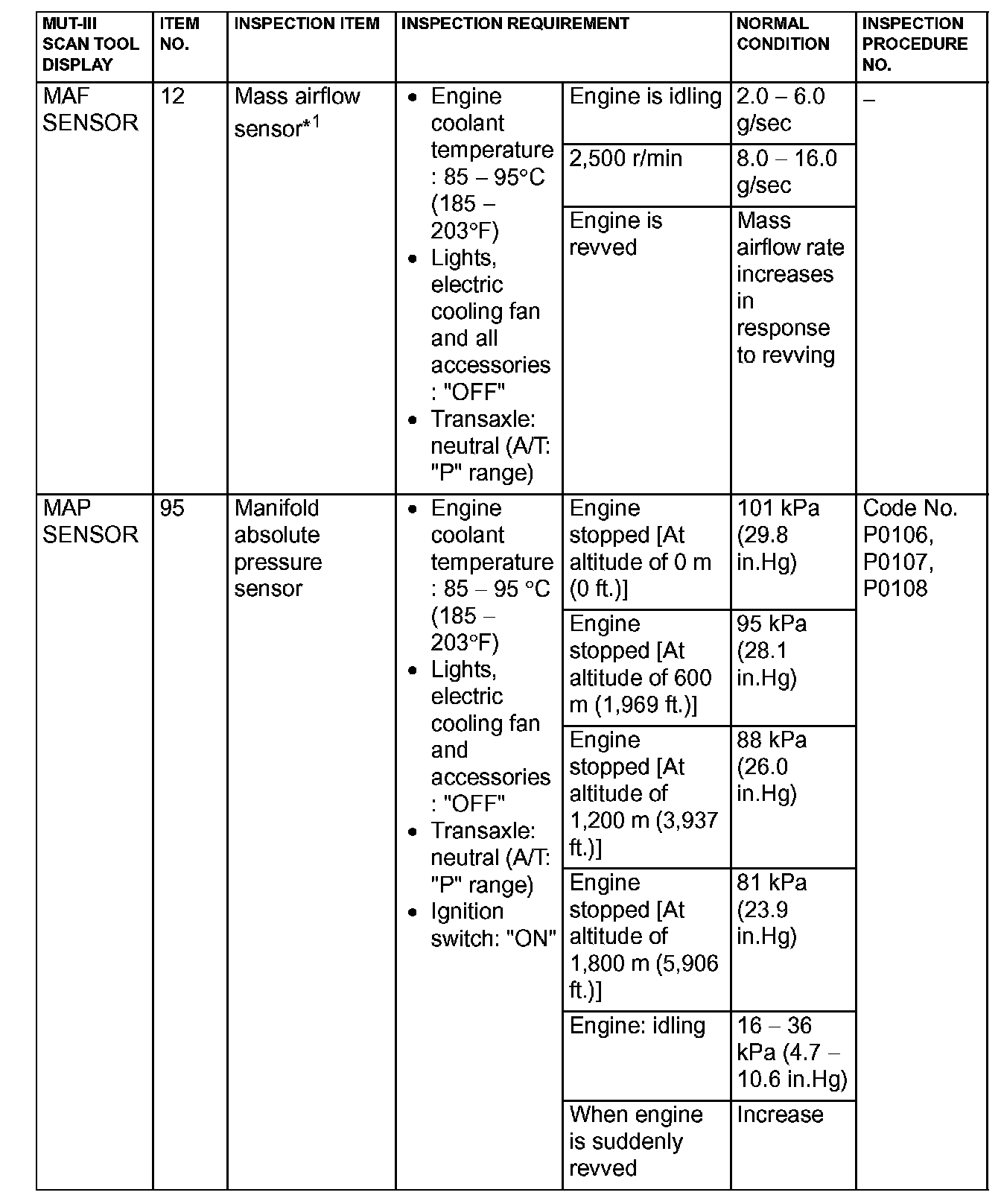 NOTE: *5: In a new vehicle [driven approximately 500 km (311 mile) or less], the mass airflow sensor output value is sometimes 10% higher than the standard value.