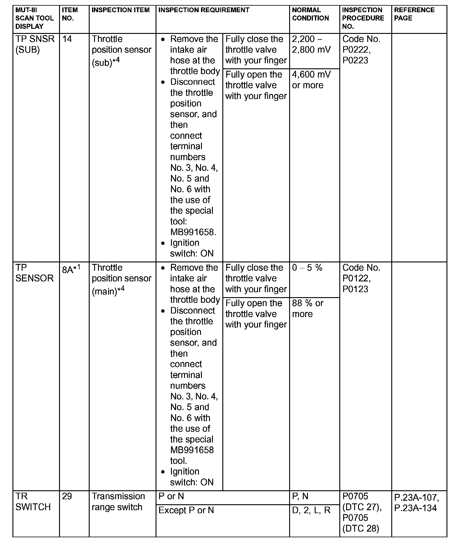 NOTE: *4: After the inspection has been completed, connect the throttle actuator control motor connector, and then use the scan tool MB991958 (MUT-III sub assembly) to delete the diagnosis code that was recorded during the inspection.