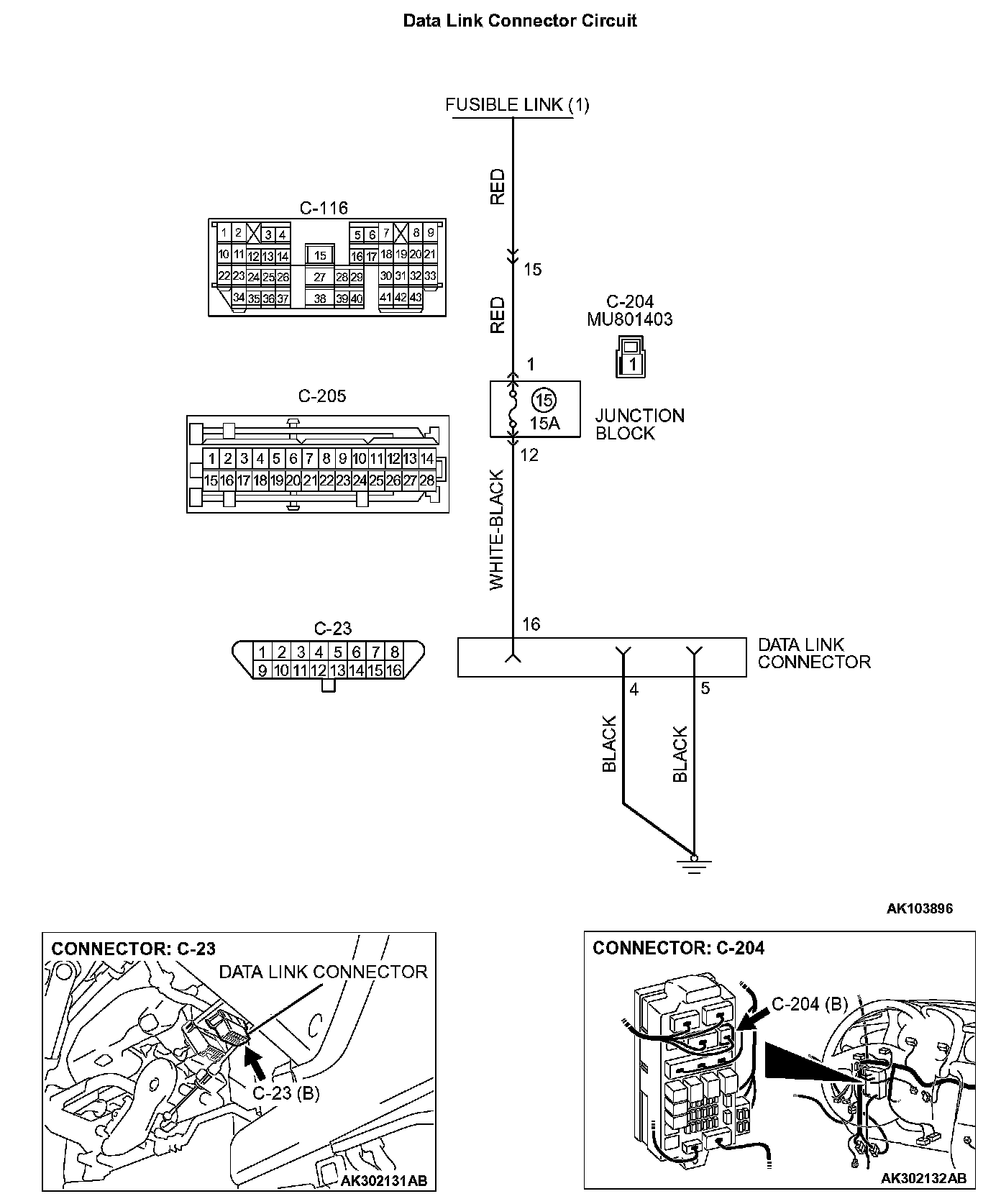 STEP 2. Check the continuity at data link connector C-23.
