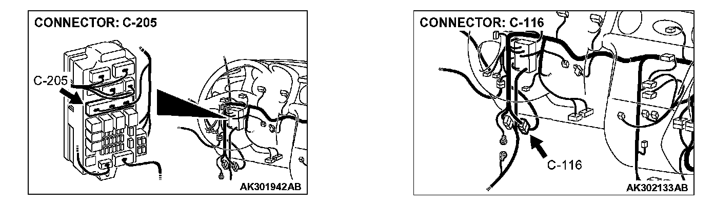 NO: Check harness connectors C-116, C-204 and C-205 at intermediate connector for damage, and repair or replace as required. Refer to Harness Connector Inspection. If intermediate connectors are in good condition, repair harness wire between fusible link 1. and data link connector C-23 (terminal No. 16) because of open circuit. Then confirm that the malfunction symptom is eliminated.