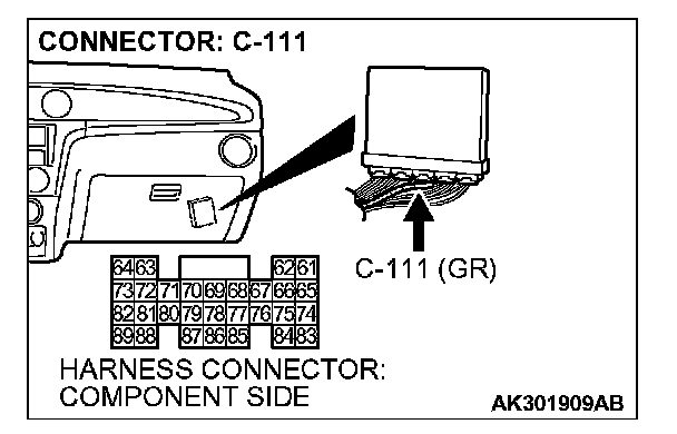 1. Disconnect the connector C-111 and measure at the harness side.