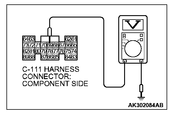 3. Measure the voltage between terminal No. 69 and ground.