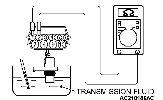 3. If the transmission fluid temperature sensor resistance is outside the specified range and the "A/T TEMP" warning light is illuminating, replace the transmission fluid temperature sensor.