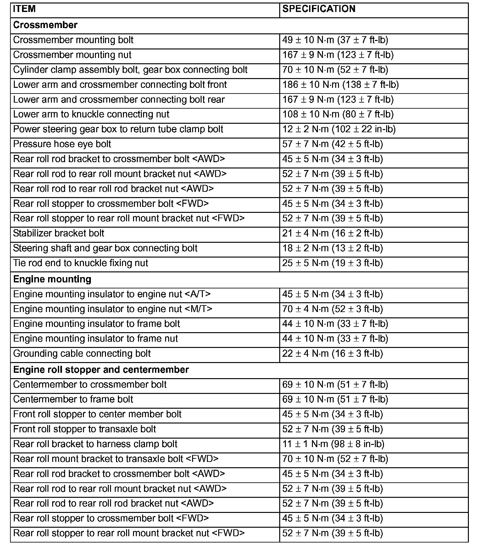 Fastener Tightening Specifications