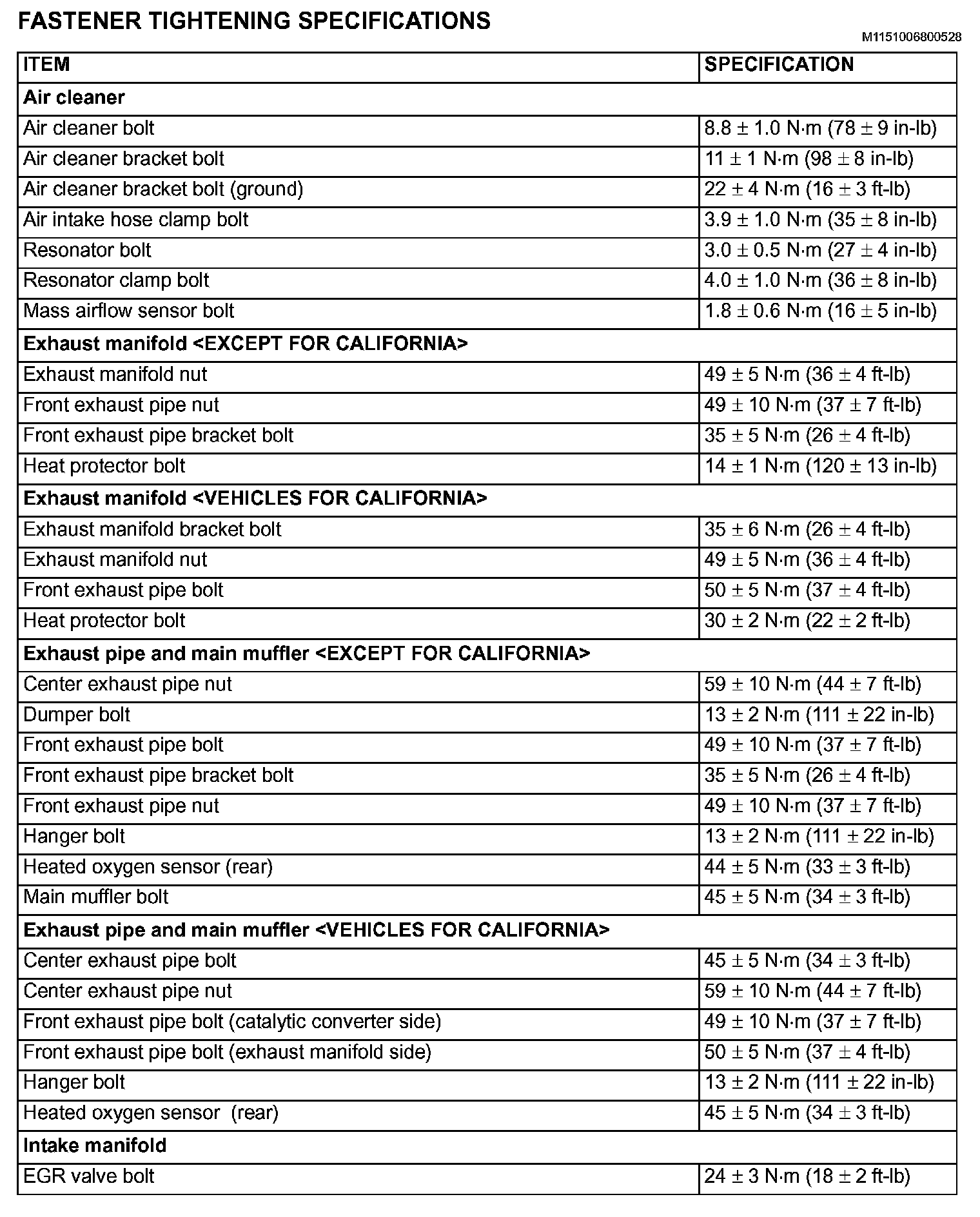 Fastener Tightening Specifications