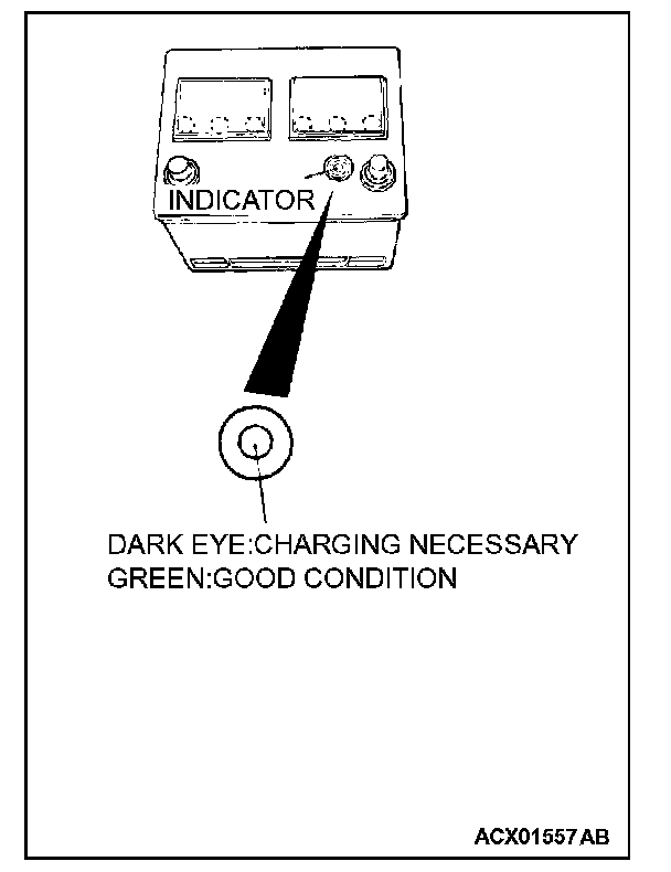 The battery contains a visual test indicator which gives a green signal when an adequate charge level exists, and a dark signal when charging is required.