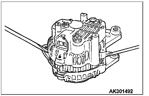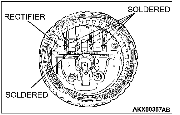 1. Use a soldering iron (180 to 250 W) to unsolder the stator. This work should be completed within approximately four seconds, to prevent heat from transferring to the diode.