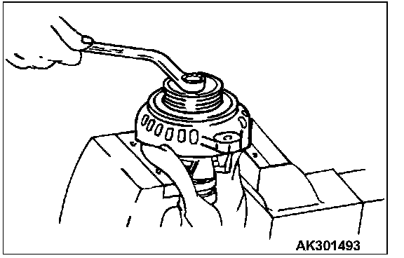 Set the pulley upward, clamp the rotor in a vise, and remove the pulley