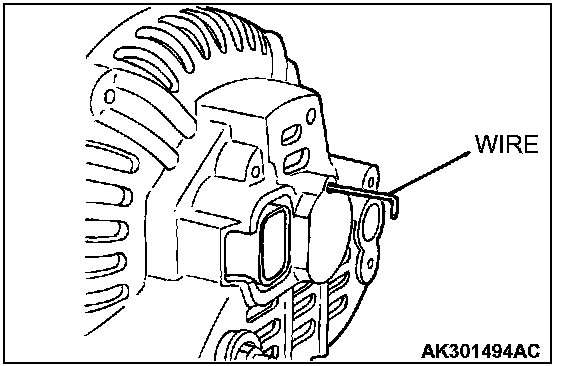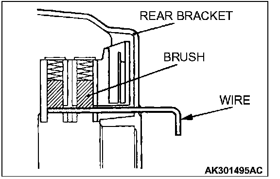 After installing the regulator assembly, insert a wire through the hole provided on the rear bracket while pressing down on the brush, and secure the brush.