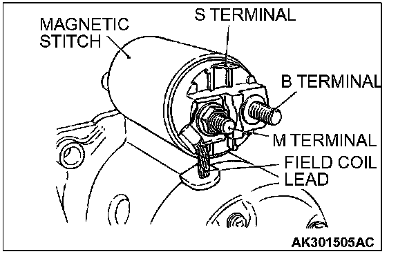 Disconnect the lead from the M terminal of the magnetic switch.