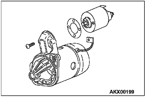 5. If the pinion gap is out of specification, adjust by adding or removing gasket(s) between the magnetic switch and front bracket.
