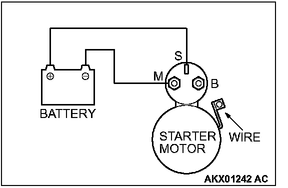 1. Place the starter motor in a vise equipped with soft jaws and connect a fully-charged 12-volt battery to the starter motor as follows: