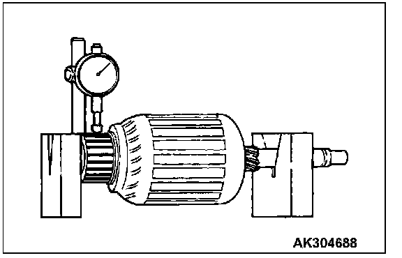 1. Place the armature on a pair of V-blocks, and check the deflection by using a dial gauge.