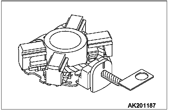 1. Check the commutator contacting surface of each brush for abnormal roughness. Also check the height of the brush. Replace the brush holder if the height is lower than the limit.