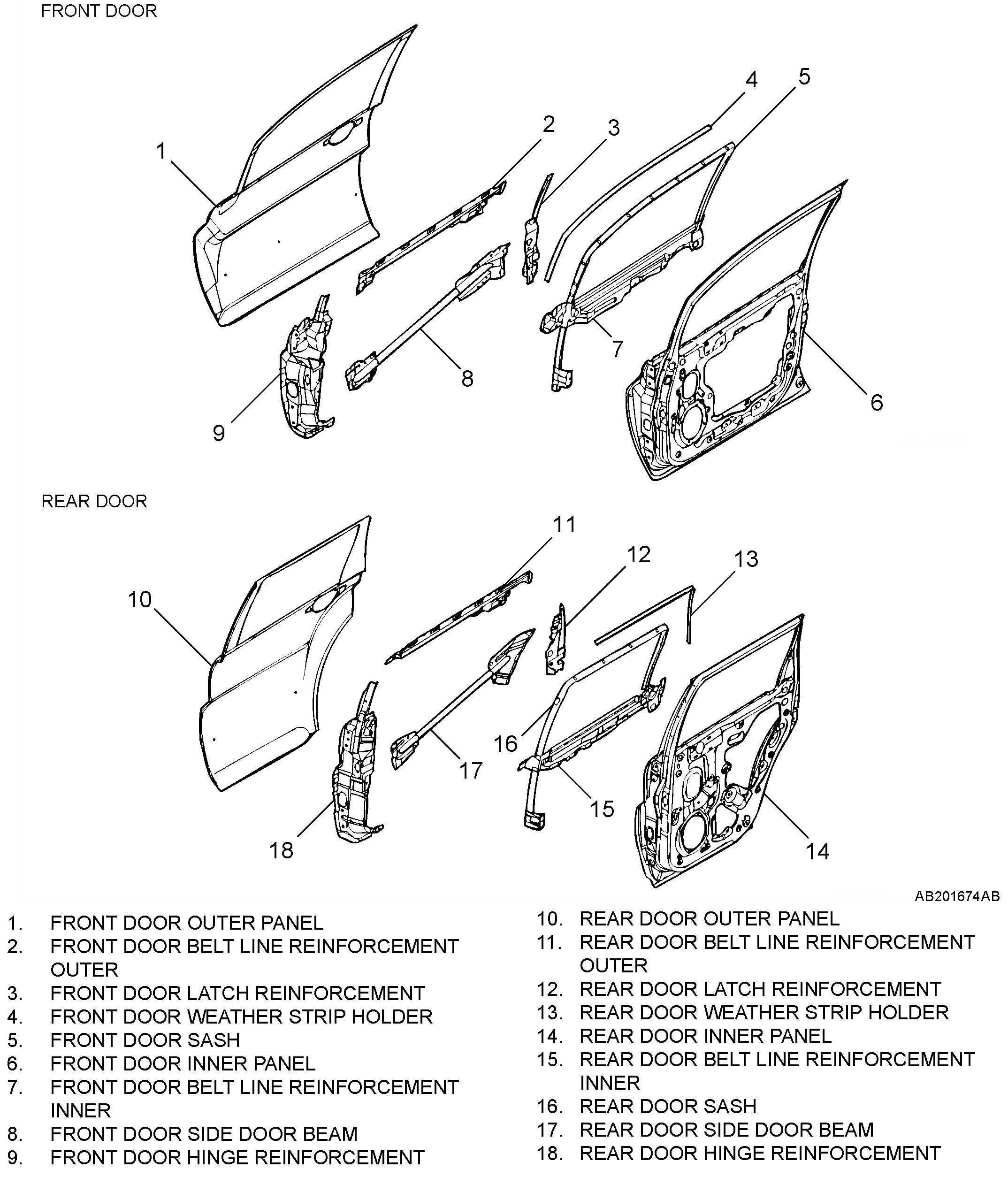 A one-piece top-bottom pressed door structure was employed for the door outer panel and door inner panel to improve door panel rigidity.
