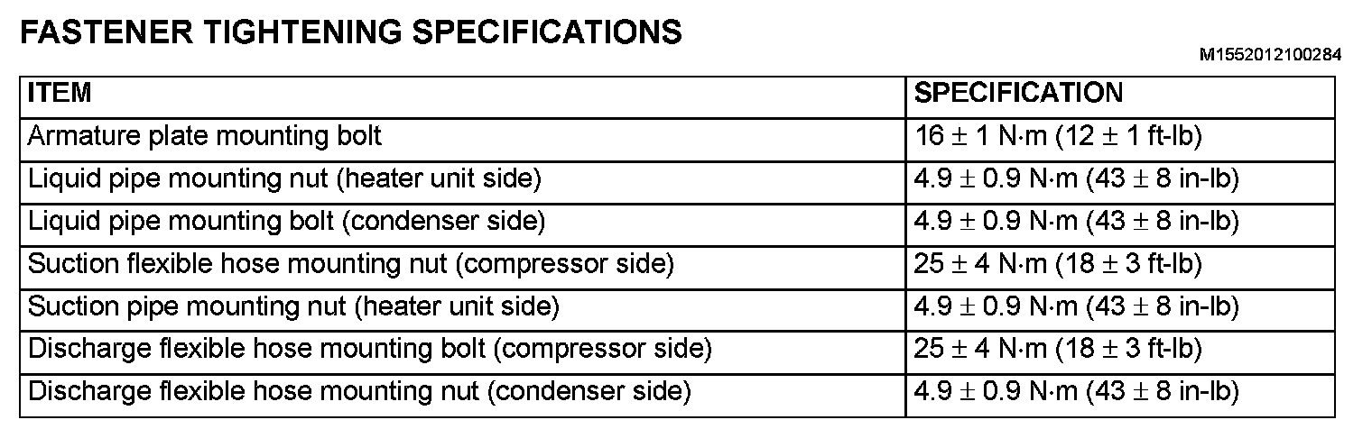Fastener Tightening Specifications: