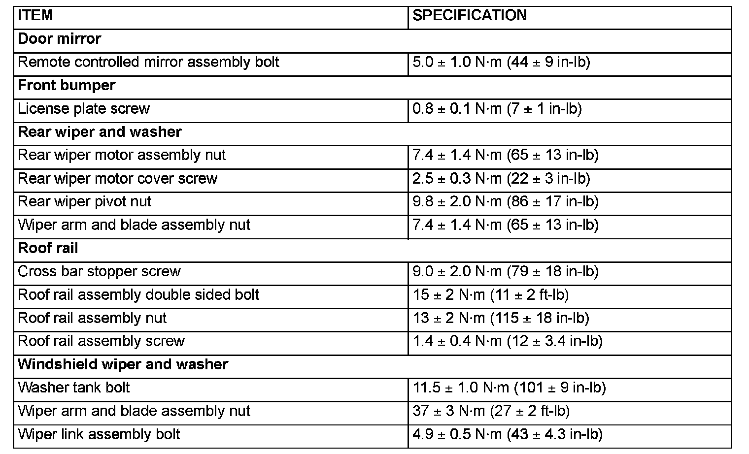 Fastener Tightening Specifications: