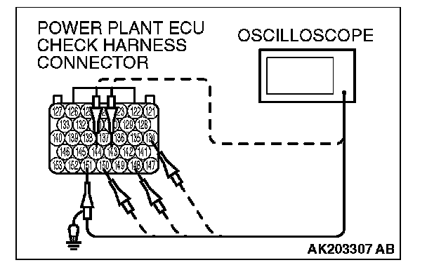 2. Connect the oscilloscope probe to each check harness connector terminal to analyze each cylinder: