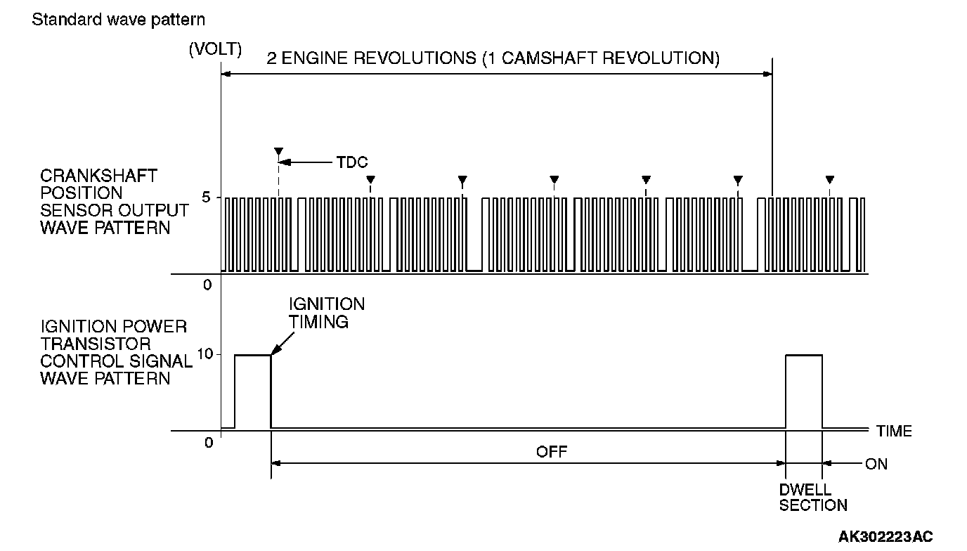 Point: The power transistor control signal (ignition timing) is advanced when the engine speed is increased.