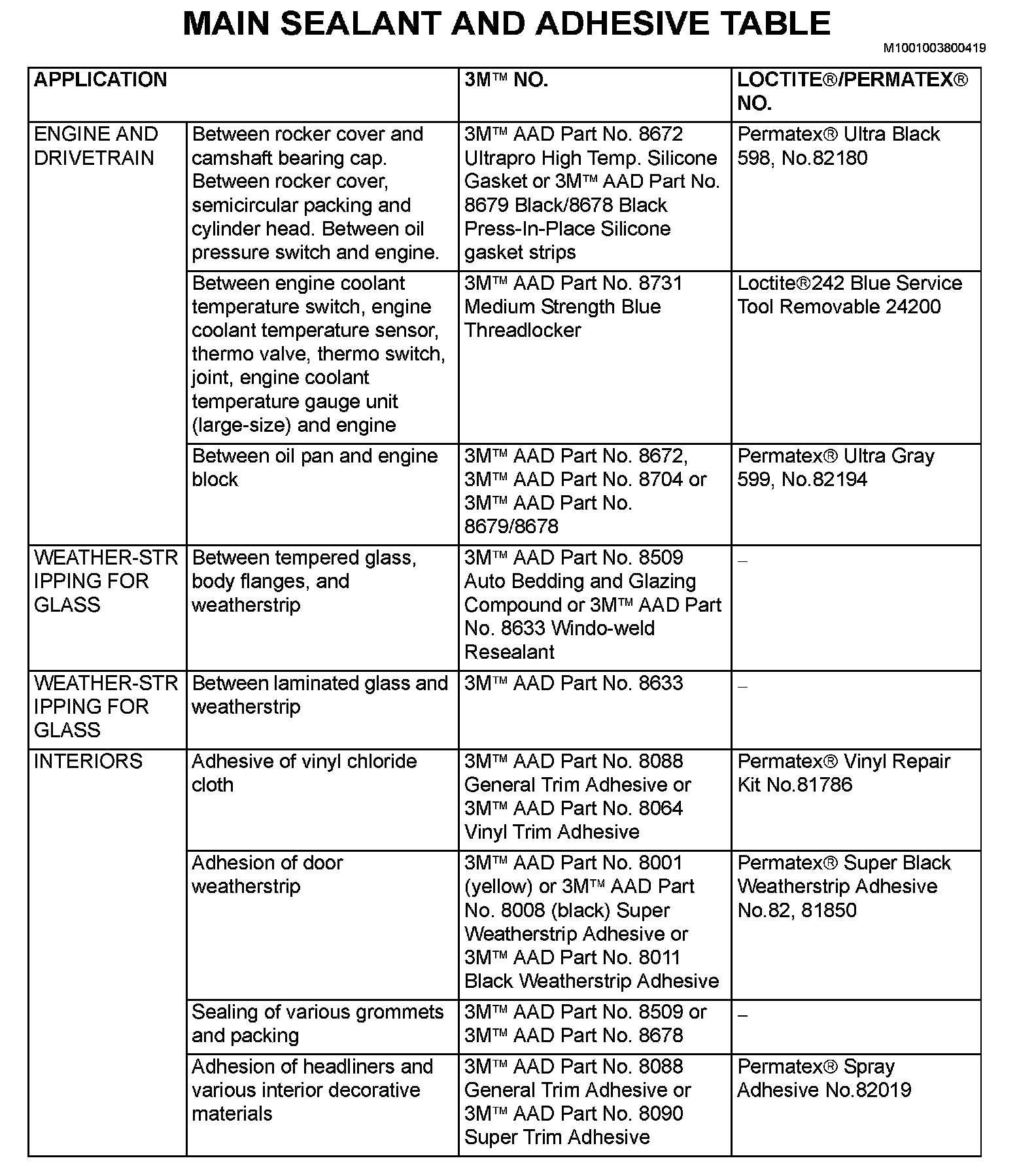 MAIN SEALANT AND ADHESIVE TABLE (PART 3):