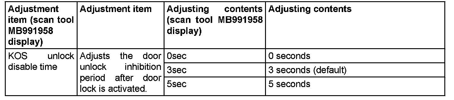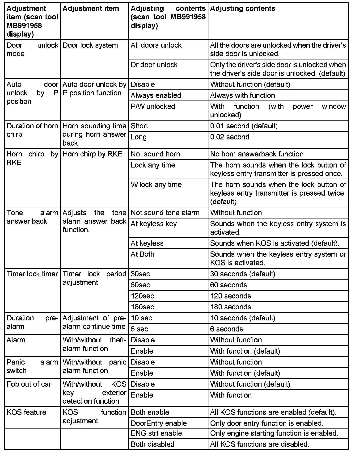 - A function that sounds the outer tone alarm when the doors are locked/unlocked by the keyless operation key to enable the driver confirm that the doors are locked/unlocked All KOS functions.