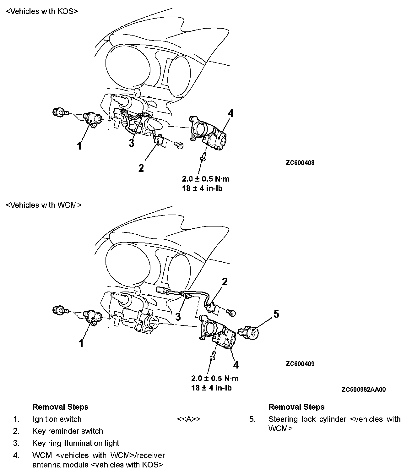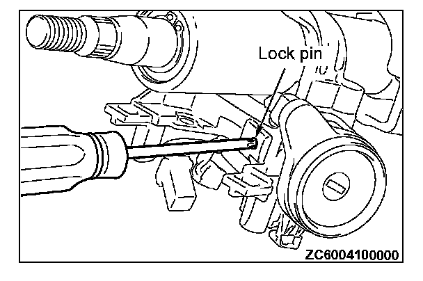 2. With using a cross-headed screw driver (small) or similar items to press in the lock pin, remove the ignition key, and then remove the steering lock cylinder.