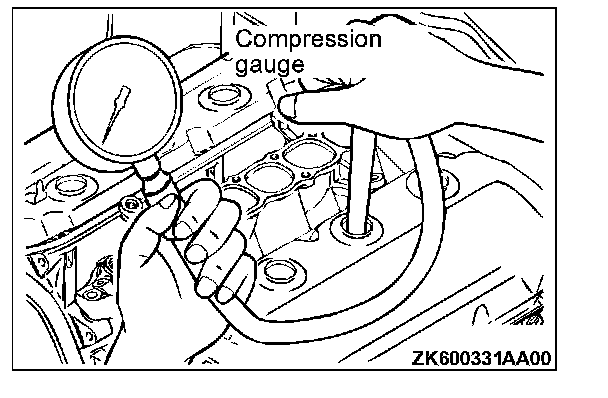 8. If there is a cylinder with compression or a compression difference that is outside the limit, pour a small amount of engine oil through the spark plug hole, and repeat the operations in steps 6 to 8.