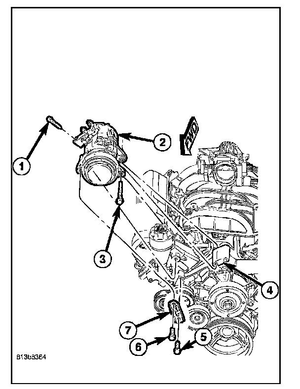 2. Position the A/C compressor onto the accessory mounting bracket (4).