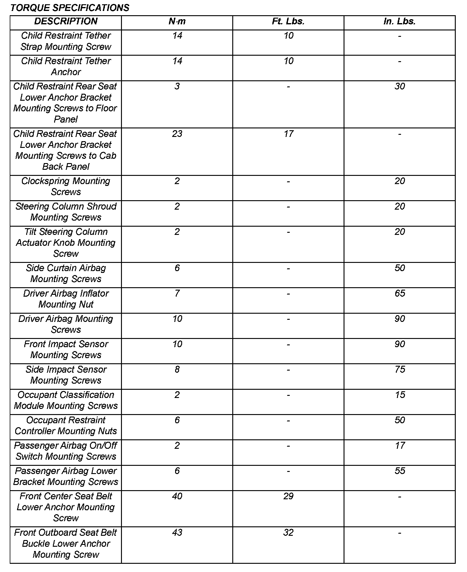 Torque Specifications Part 1: