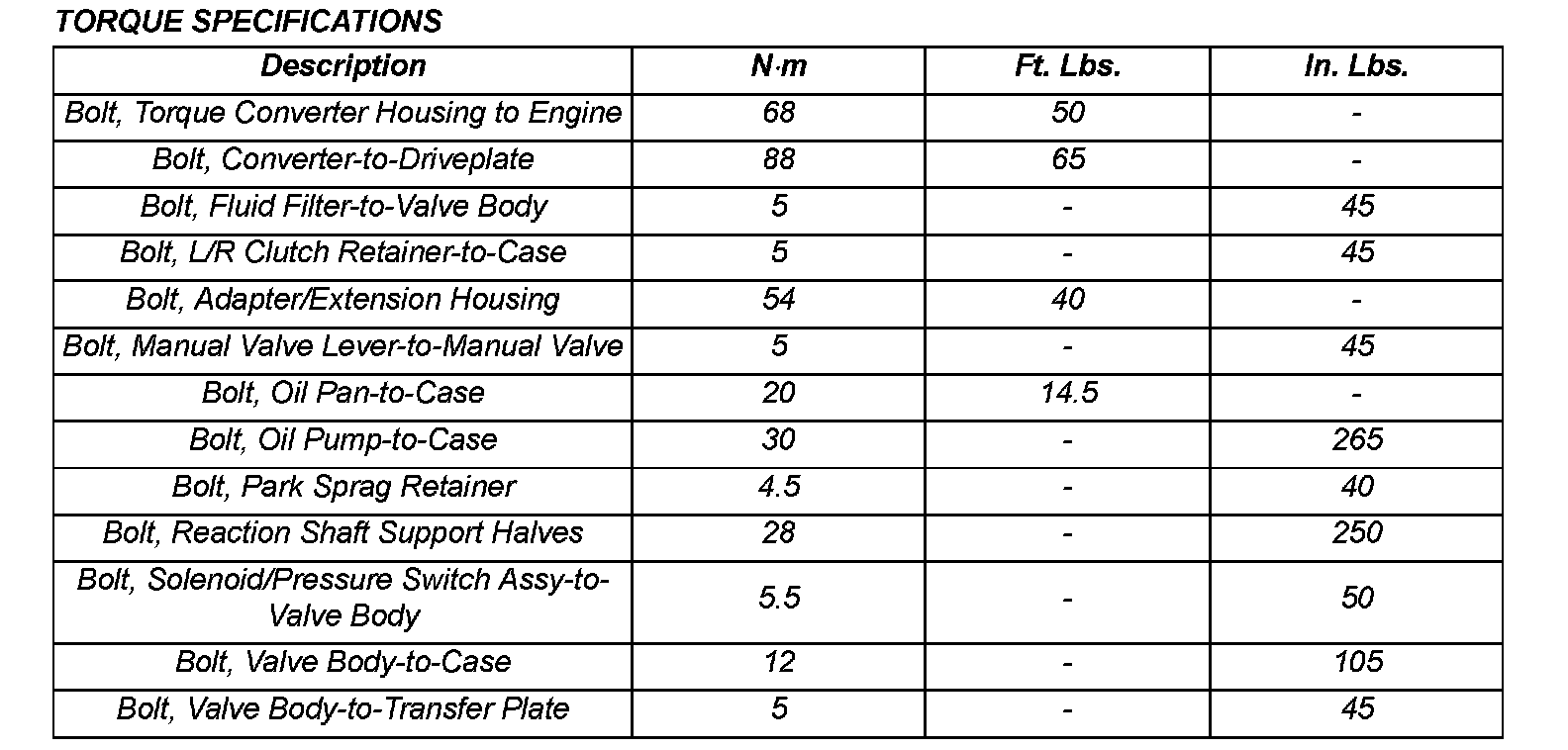 Torque Specifications - 42RLE