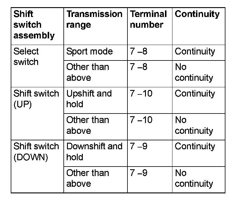 Shift Switch Assembly Continuity Check