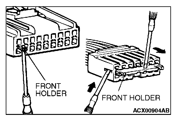 1. Insert a screwdriver [1.4 mm (0.06 inch) width] as shown in the figure, disengage the front holder, and remove it.