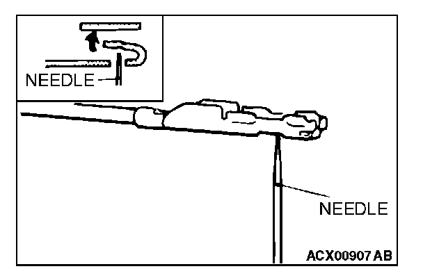 4. Insert a needle through the hole provided on the terminal and raise the contact point. Lightly squeeze the outer edge so the flats are parallel with the bottom.