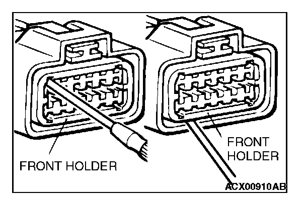 2. Push the harness wire of the terminal to be repaired deep into the connector from the harness side and hold it there.