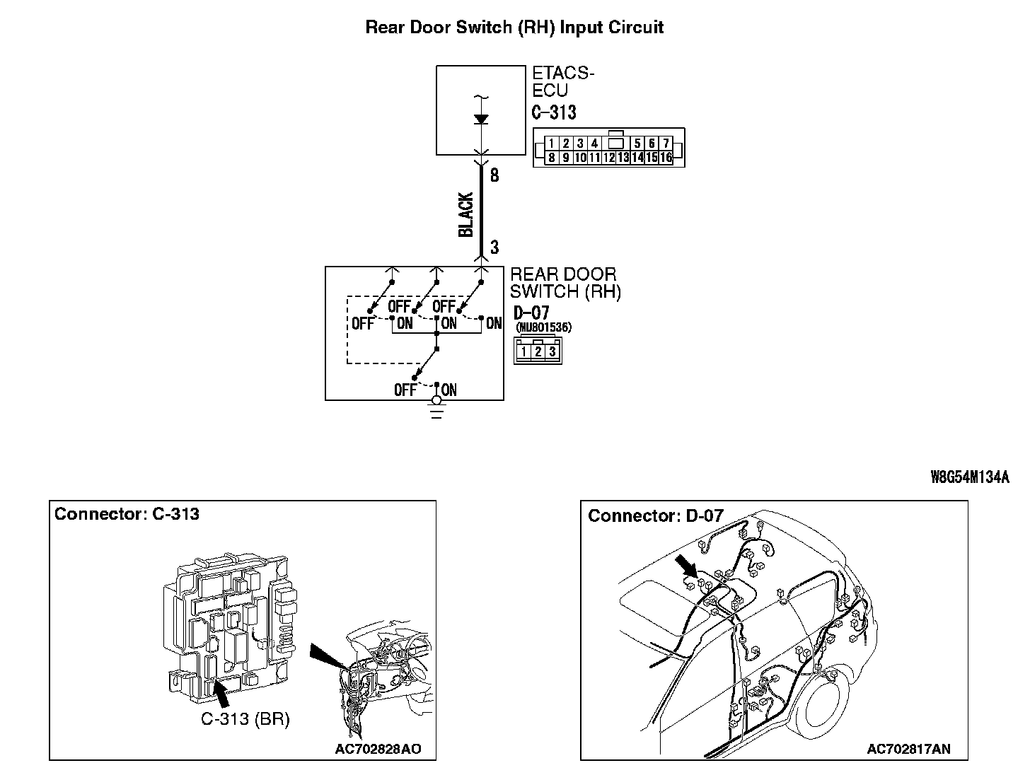 Inspection Procedure 8: ETACS-ECU Does Not Receive Any Signal From The Rear Door Switch (RH).Rear Door Switch (RH) Input Circuit: