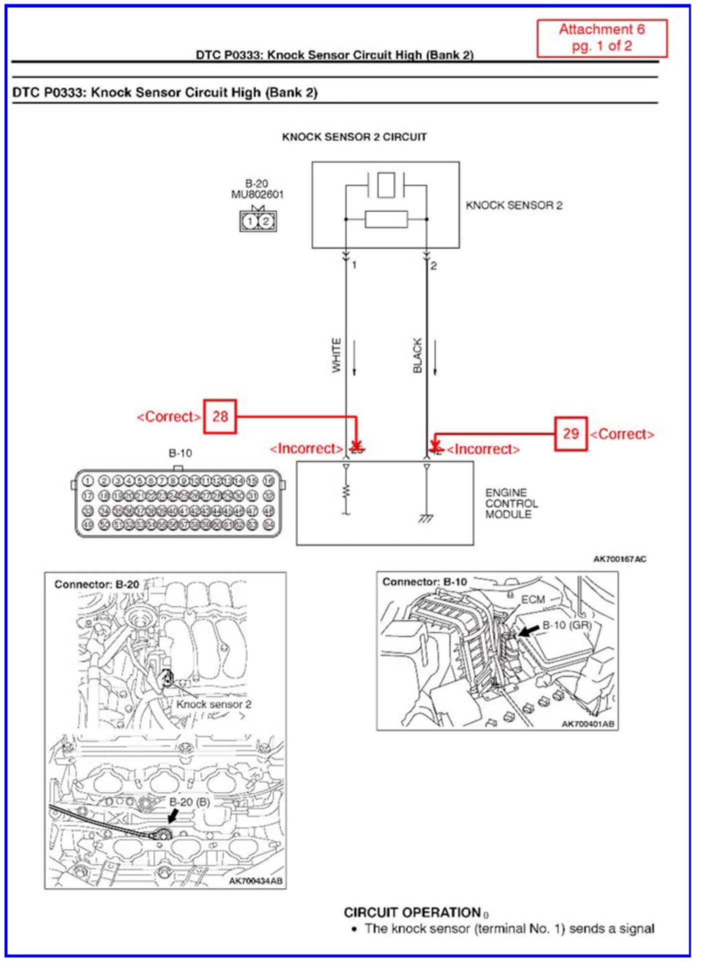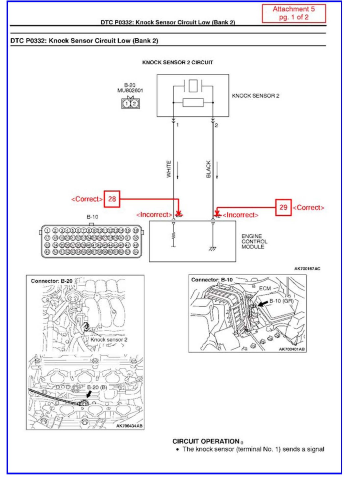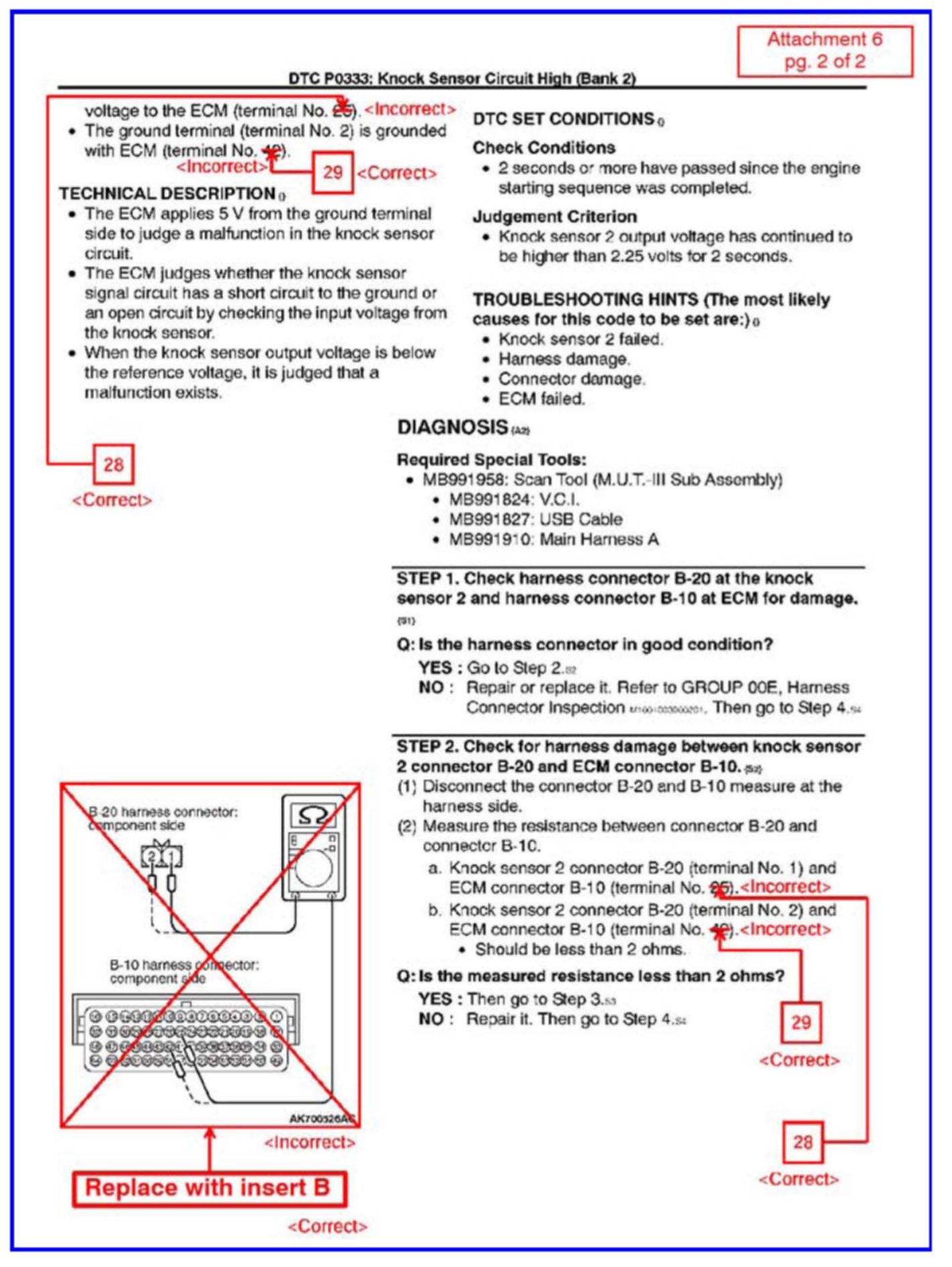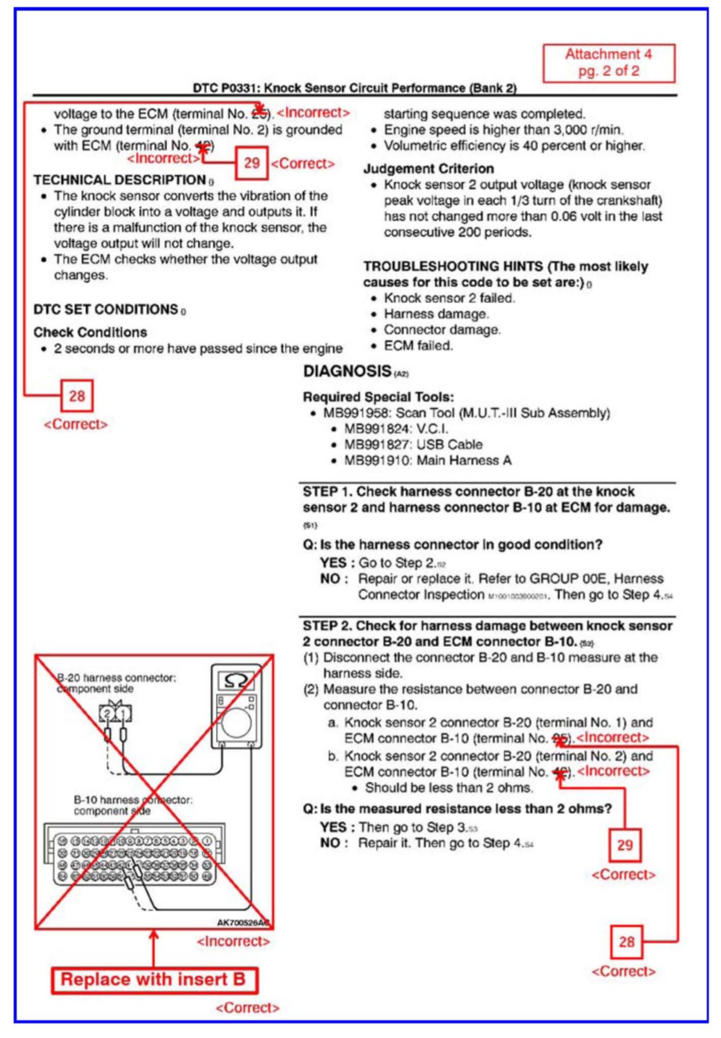 To correct ECM connector information relating to diagnosis of DTCs P0326, P0327, P0328, P0331, P0332, and P0333.