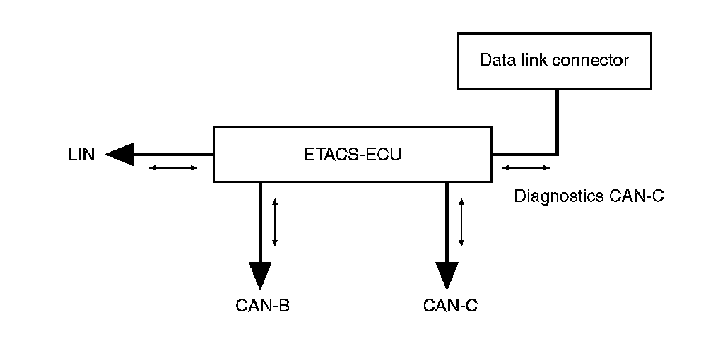 As a central ECU for the on-vehicle communication network system established in the vehicle, the gateway function is integrated into ETACS-ECU. The gateway function offers the following functions: