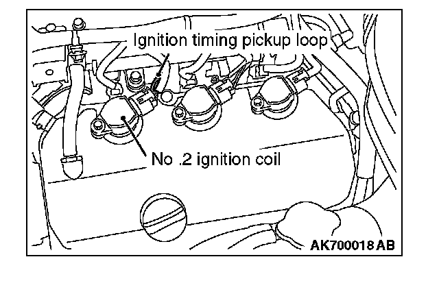 3. Set the timing light to the power supply line (terminal No. 1) of the ignition coil No. 2.