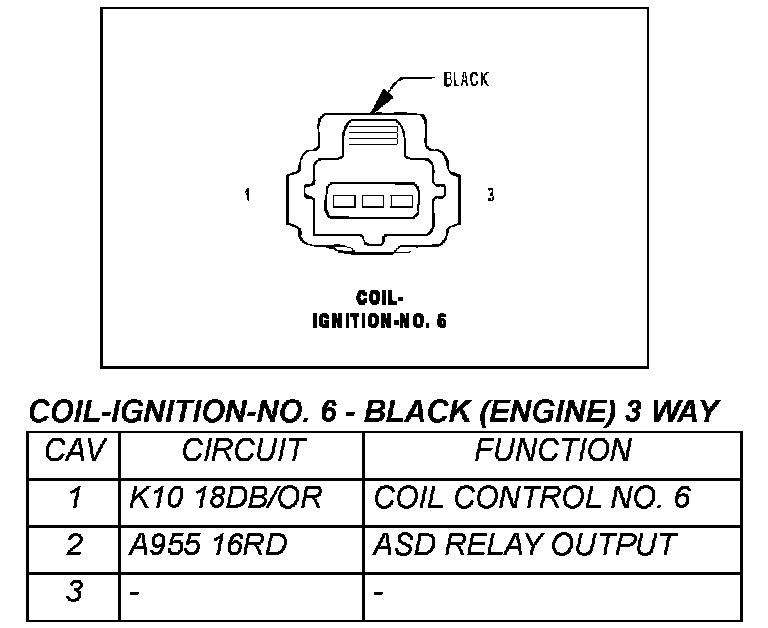 Coil - Ignition No. 6 - Black (Engine) 3 Way: