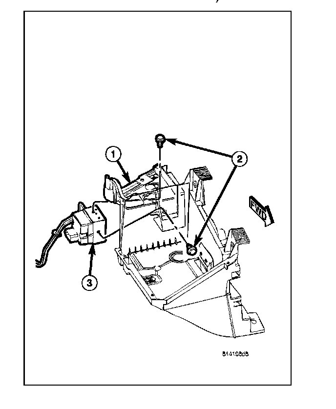 4. Remove the Antilock Brake System (ABS) Hydraulic Control Unit (HCU) (3) bolts (2) from the battery tray (1).