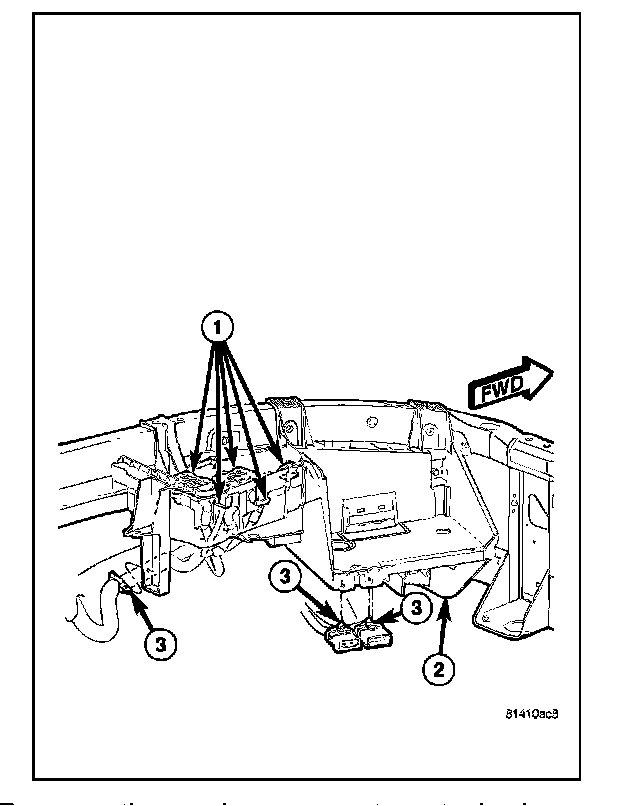 NOTE: The middle bolt hole is to remain open for a front fender liner fastener (1).