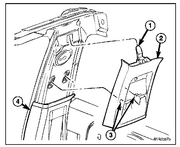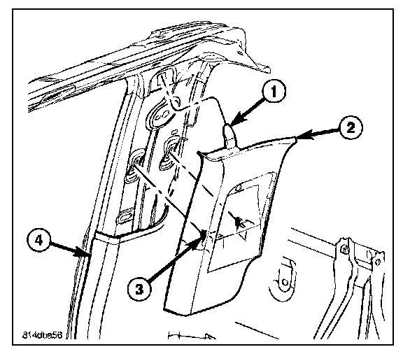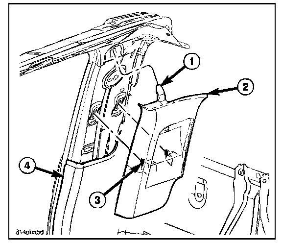 3. On extended cab models remove the upper c-pillar trim (2).