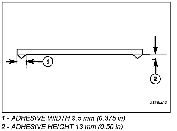 5. Apply a 13 mm (0.5 in.) (2) X 9.5 mm (0.375 in) (1) bead of urethane around the perimeter of the window frame bonding surface.