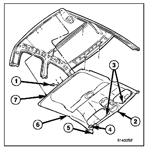 15. Install the headliner (6).